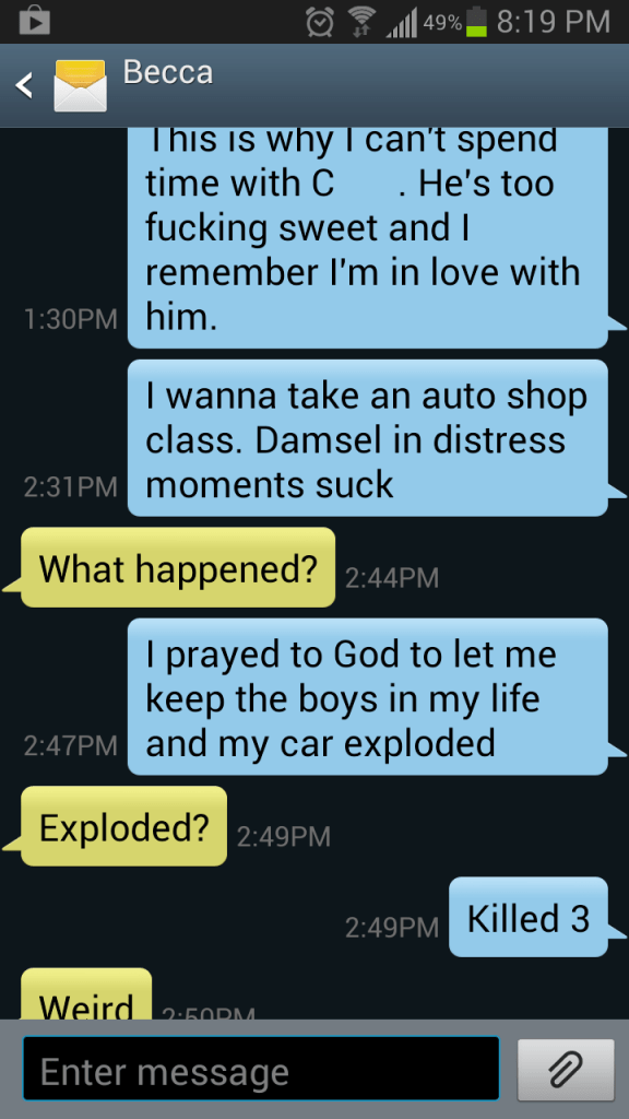 becca convo 1 Published January 21, 2013 at 720 × 1280 in becca convo 1 Share this: Share on Facebook (Opens in new window) Facebook Share on Pinterest (Opens in new window) Pinterest Share on Reddit (Opens in new window) Reddit Share on Threads (Opens in new window) Threads Share on X (Opens in new window) X Like Loading...