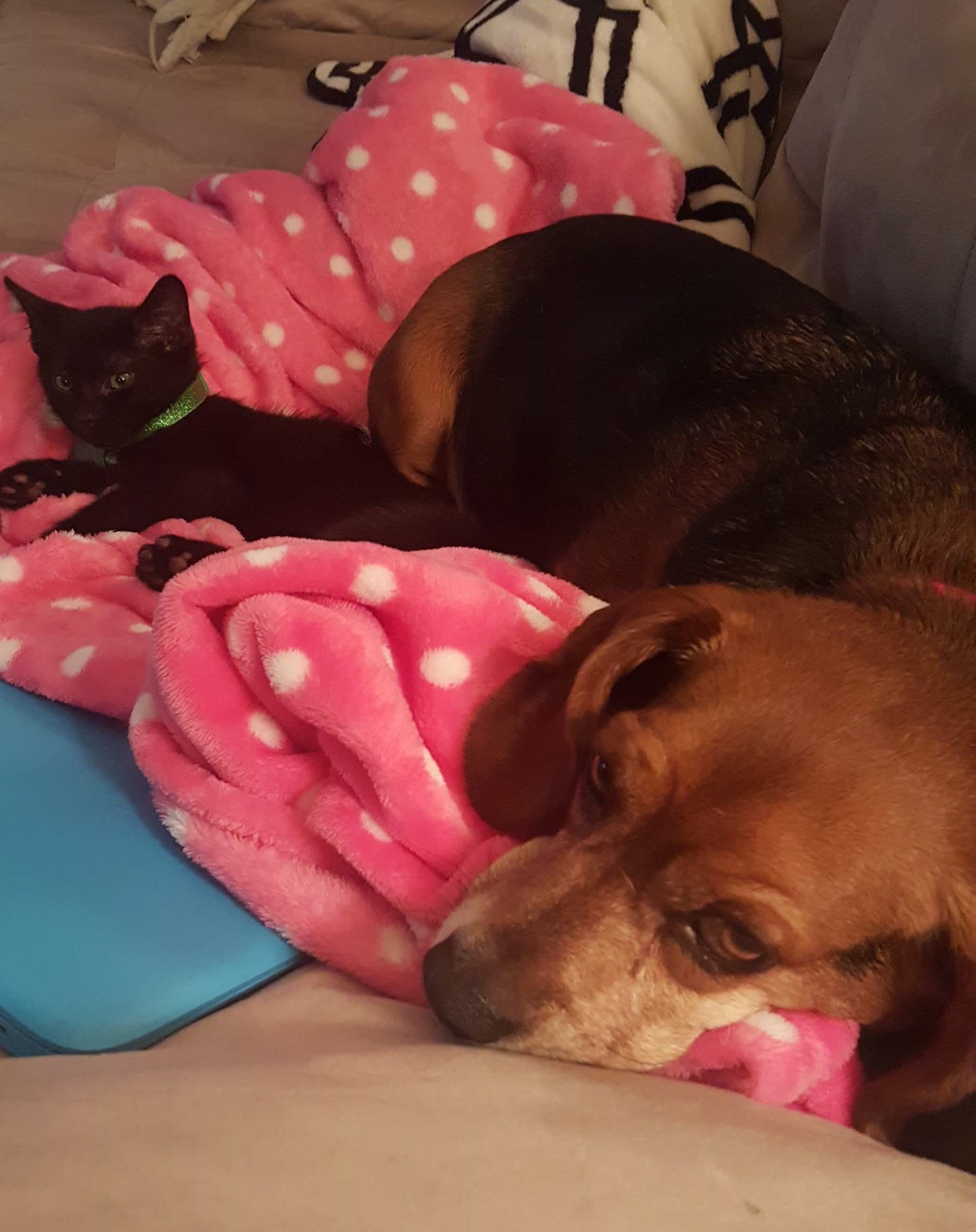 For years, Jude was petrified of men. I’d invite my guy friends over to my apartment and find myself forced to crate the normally sweet and docile beagle, for fear his aggressive barking would turn to biting. My time was limited, working two jobs and going to graduate school, but I ended every night with Jude by my side, often into the wee hours of the morning, as I did my homework. He slept in my bedroom, preferring the blankets on the floor to my incredibly uncomfortable $300 twenty-somethings mattress, but I called him up every morning to snuggle, before I went to work. I took him on late night car rides and fed him people food, to his detriment, surely. He played in my Gramma’s yard whenever we had the time and camped out in the bathtub with me during tornado scares. I used to say that I wish I trusted anyone as much as that dog trusted me. He even let me bathe him, despite the terror of bath time ingrained by my ex, as long as I sang him through it.